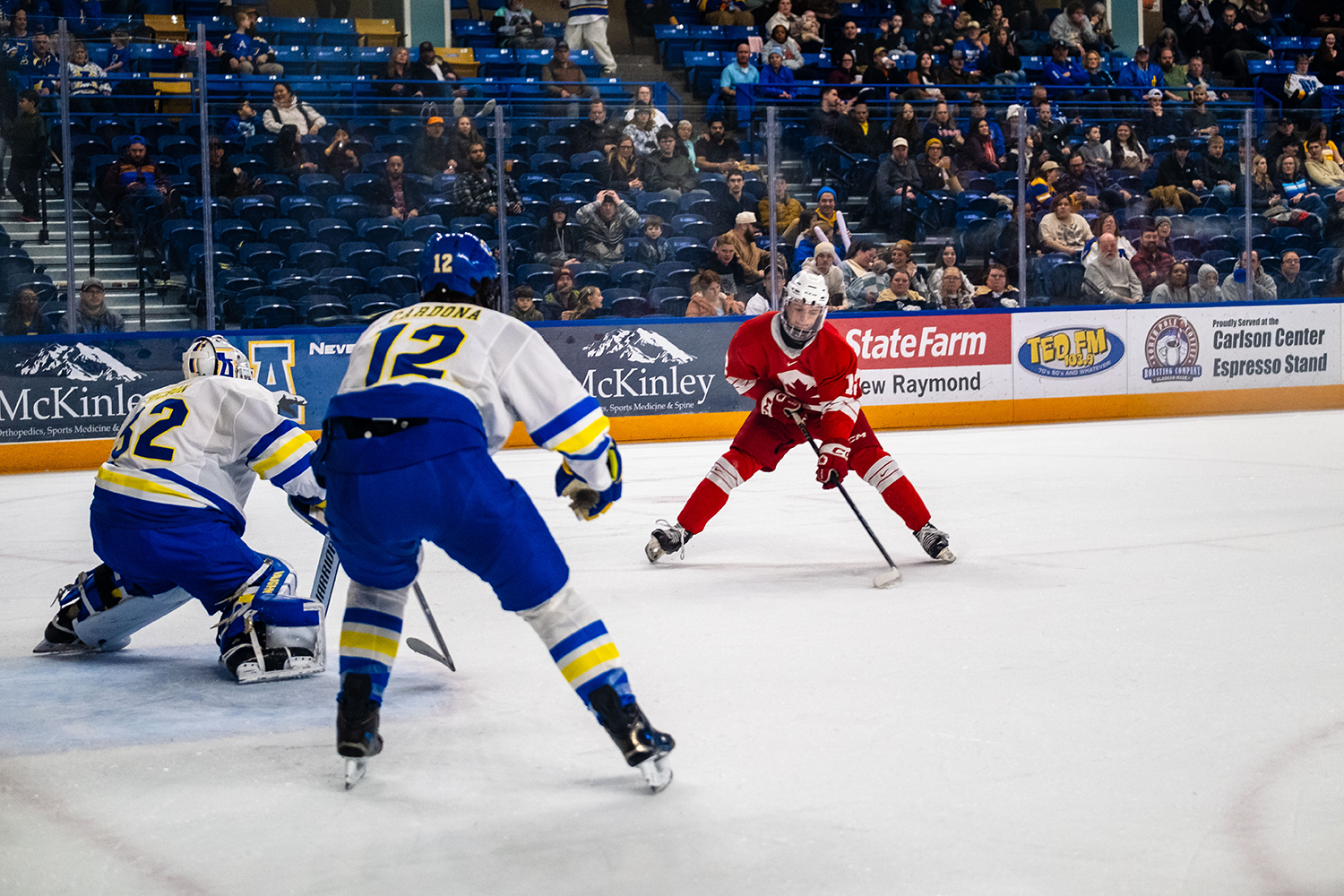 After a fun start to the week with a visit from Oxygen Yoga for some chilly warmup stretches, the SFU Non-Conference team headed north to Fairbanks to take on a familiar rival in University of Alaska Nanooks. The varsity women's volleyball team happened to be in town taking on the Nanooks as well, offering fans a rare multi-sport Red Leafs doubleheader. SFU, now 3-7-2 on the season, was overdue for a win after a string of heartbreaking losses at the NCAA D1 level to FSU (3-2 overtime), LSU (3-2 regulation), Princeton (2-0 regulation) and LIU (3-2 regulation).